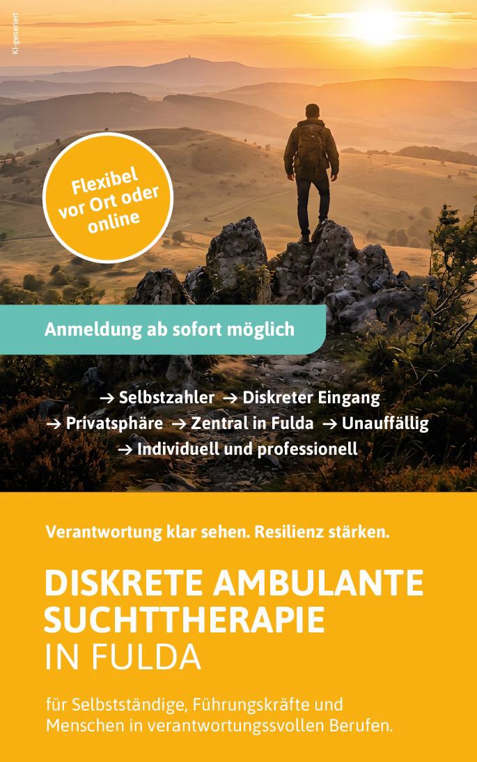 Die Fachstelle Fulda des Therapieverbundes Hessen bietet hierfür eine diskrete ambulante Behandlung sowie Beratung und Nachsorge. Unser Ansatz ist individuell, professionell und stigmafrei – mit dem Ziel, Stabilität im persönlichen und beruflichen Leben wiederherzustellen.